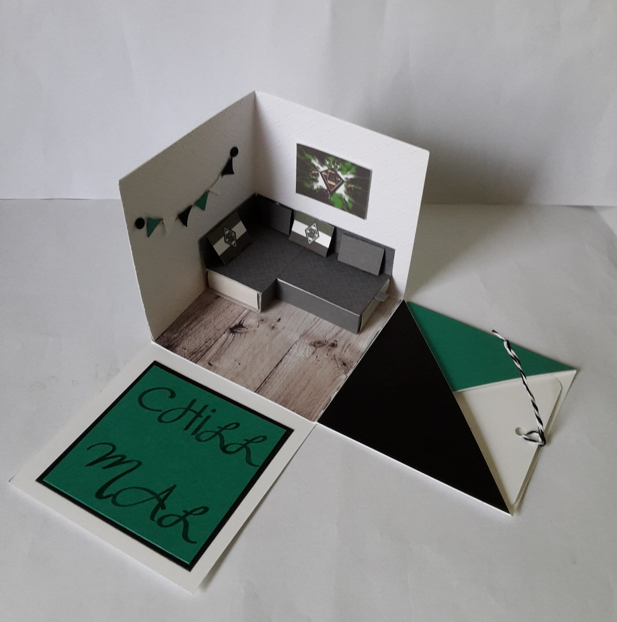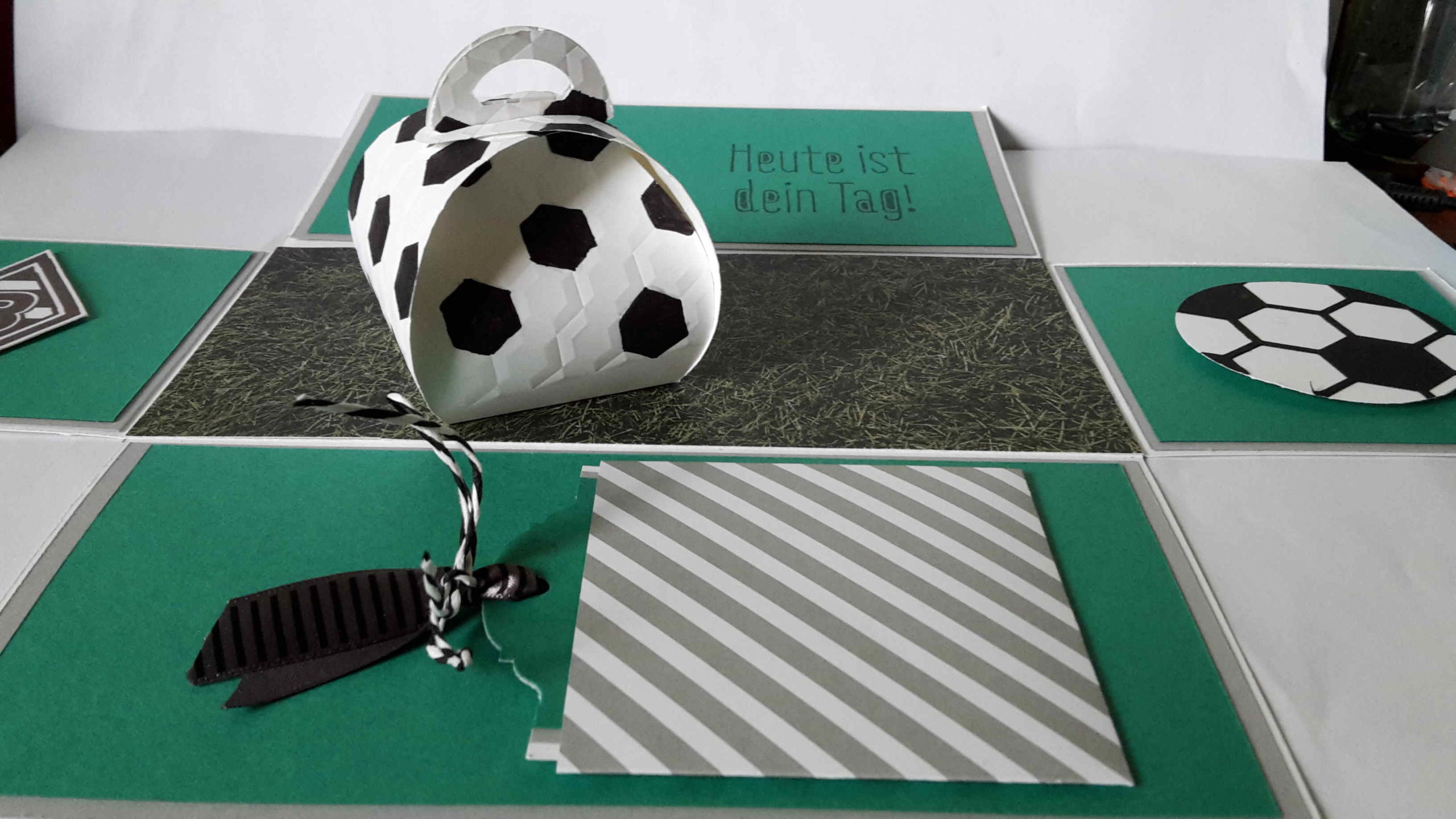 Doch da die Woche schon so voll gestopft mit Terminen und Aufträgen war, musste ich mir schnell was einfallen lassen. Und so entstand dann die nächste Box. Thema auch hier Fussball und chillen. Denn der Firmling ist im Alter, in dem die ersten Partys losgehen und man zwischendurch chillen muss! 😉