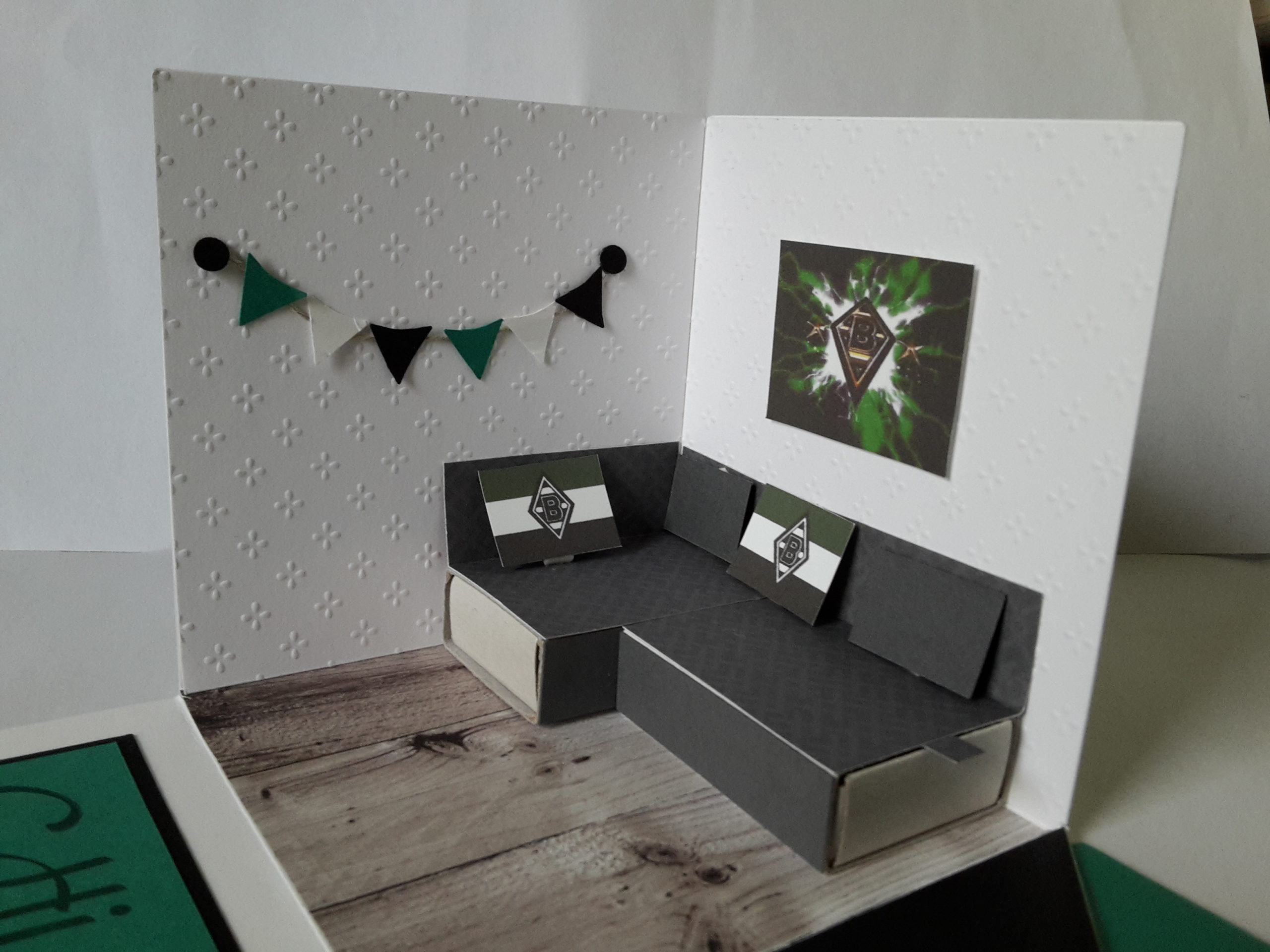 Vor knapp 2 Wochen fand hierin der Gemeinde die Firmung statt. Und dafür bekam ich eine Anfrage zu einer Explosionsbox. Der Wunsch der Auftraggeberin war, dass diese irgendwas mit Fussball zu tun haben sollte. Der Firmling ist Gladbach Fan. Es dauerte ein paar Tage, bis ich die zündende Idee hatte. Gott sei Dank gibt es ja das Internet, in dem man ja auch noch nach Anregungen gucken kann.