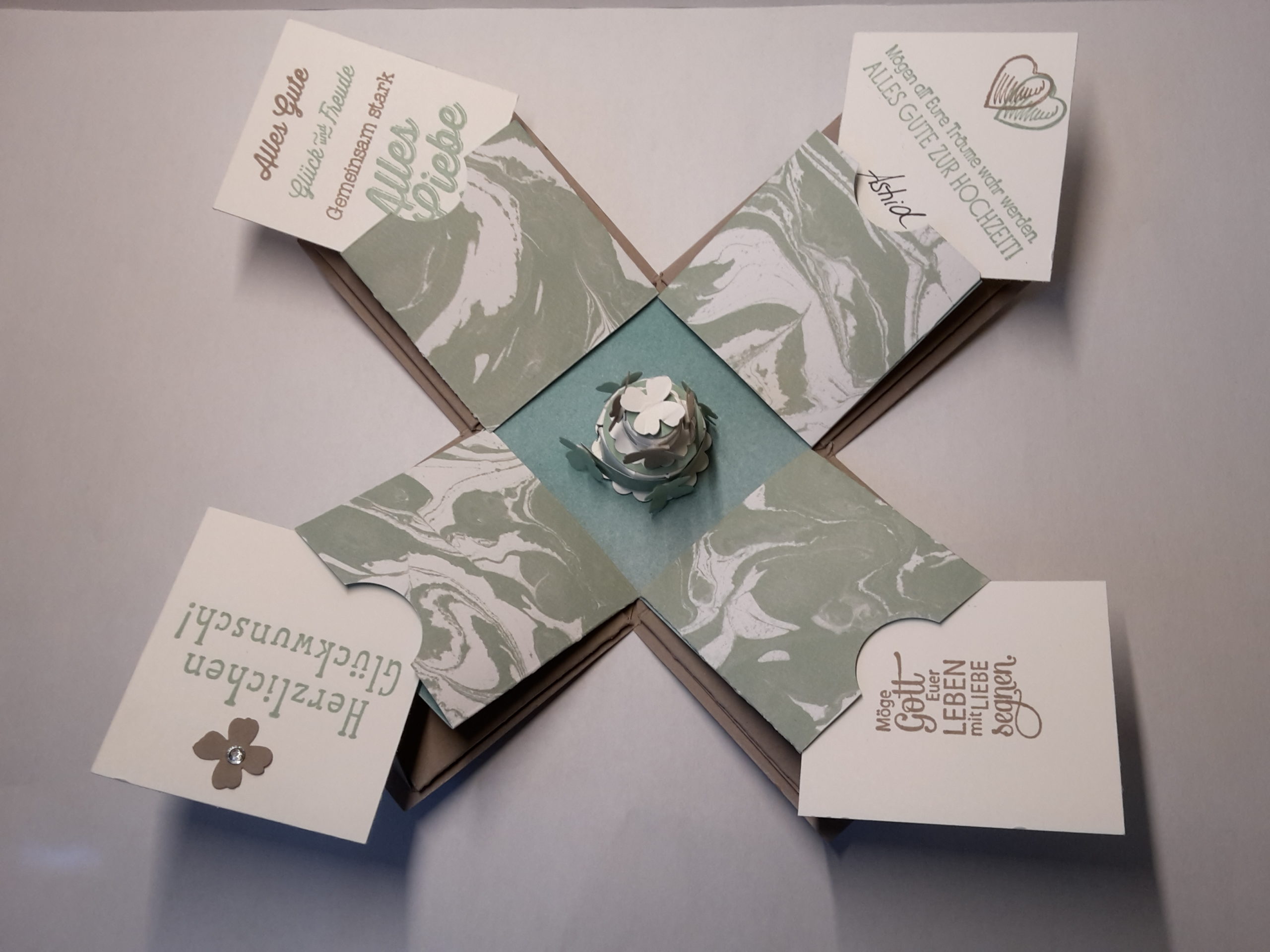 Zum guten Schluss dann mein Hochzeitsgeschenk fĂŒr  das Brautpaar. SelbstverstĂ€ndich in den entsprechenden  Farben. Alles andere wĂ€re unpassend  gewesen, oder? đ