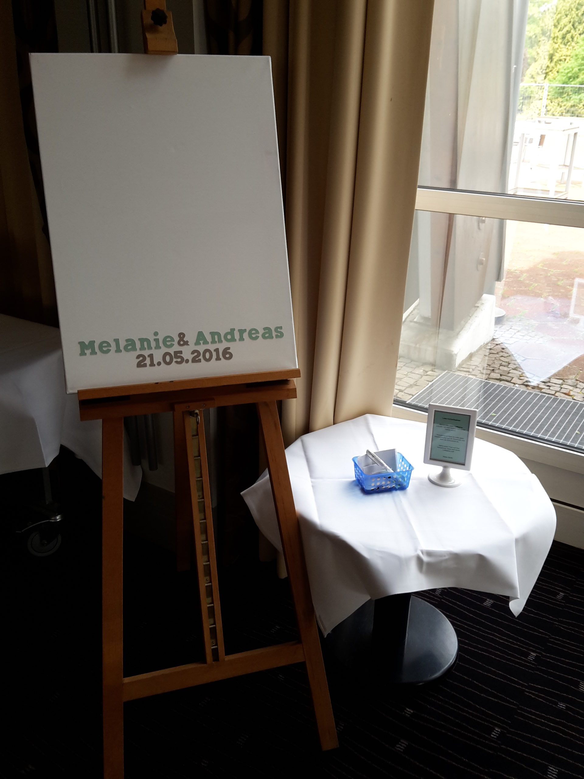 Das Brautpaar wollte den Abend keine Spielchen haben, definitiv ne gute Entscheidung, denn die können die Stimmung ziemlich  runter ziehen.  Als kleine Ăberraschung hab ich ihnen dann noch ein Leinwandbild  gefertigt, passend in den Dekofarben. Danke an meine „Stempelmama“Ilona Mura, die mich mit ihrer Cricut unterstĂŒtzt hat. đ